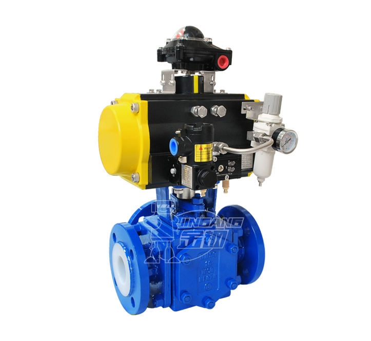 產品名稱:氣動三通襯氟球閥
