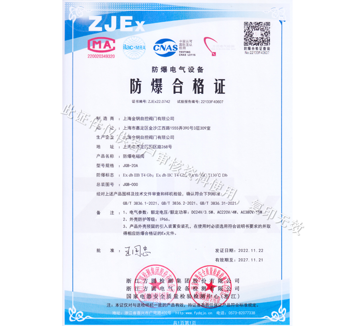 電磁閥防爆合格證CT6